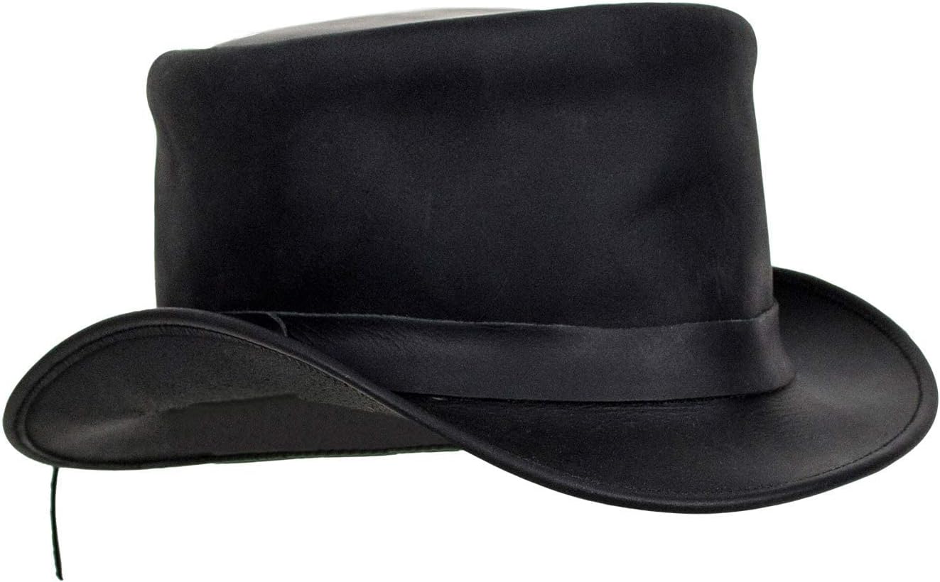- [Genuine Leather Construction] – This leather top hat for men and women handcrafted with thick genuine black naked cowhide leather is highly durable, soft and flexible enough to handle crushing and abuse while maintaining its custom shape. These leather hats are designed to offer all day protection from sun, heat and water.
