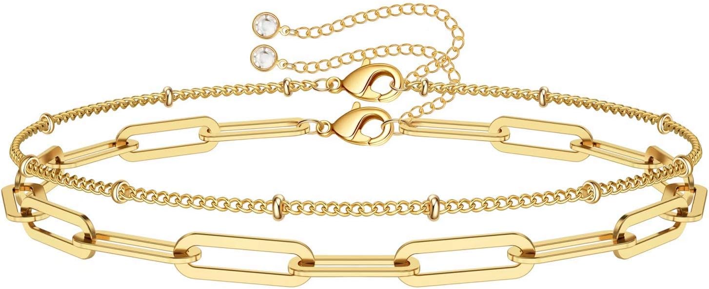 • MATERIAL: 14K-gold-plated layered chain bracelets, which doesn’t fade surely. Color will last a long time without tarnish. No harm to skin, hypoallergenic, reducing the possibility of rash or any irritation.