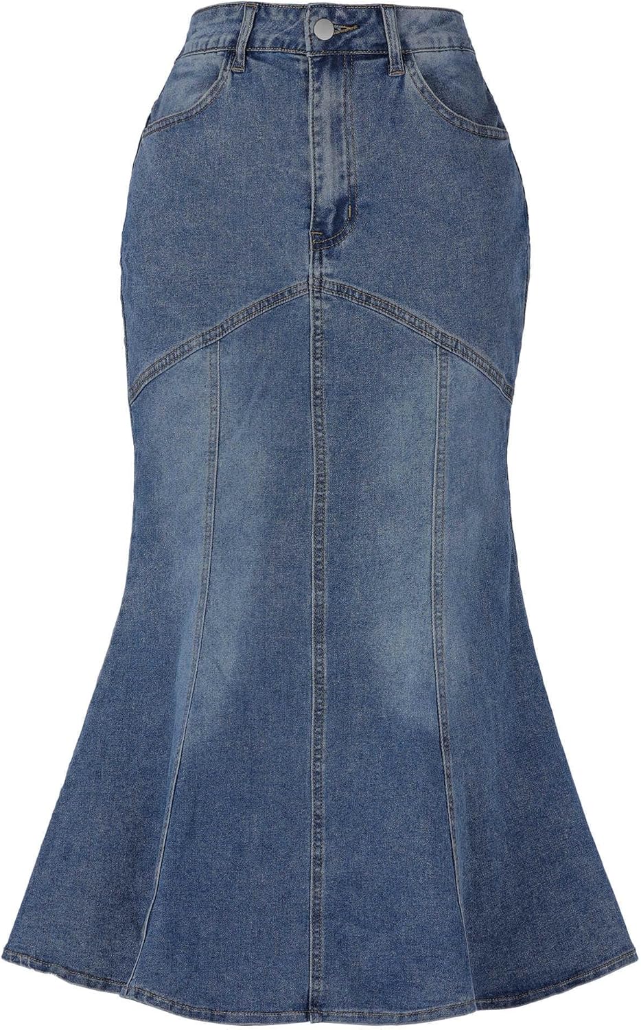 Fishtail Denim Skirt for Women Casual Washed High Waisted Midi Jean Skirts