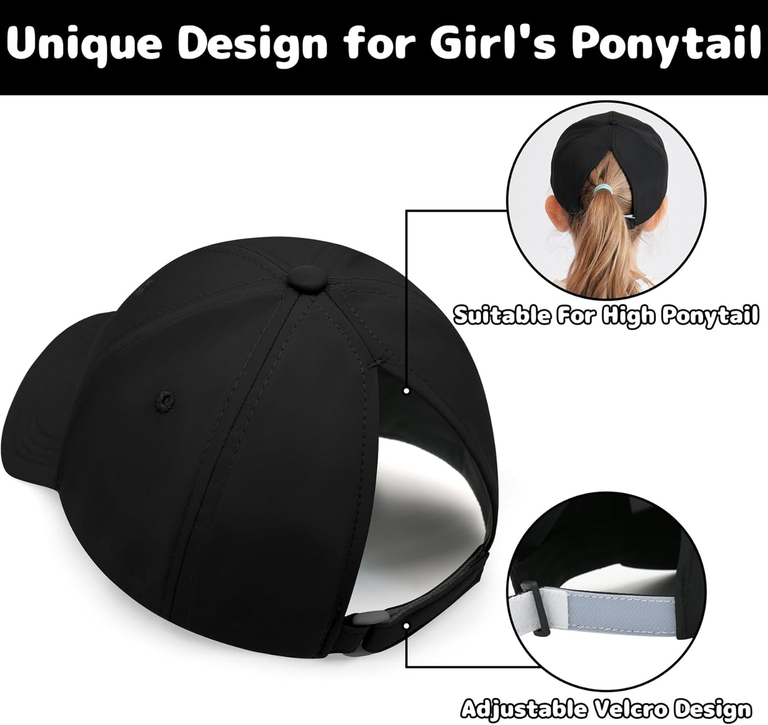 • GIRLS HIGH PONYTAIL DESIGN: Featured with a high ponytail hole on the back of our toddler girl baseball hat, girls can choose any hairstyle they want! They can e ribbons to tie up their hair into a bun or ponytail freely without getting their hair messy. In addition, these toddler girl hats are also perfect for braiding or wearing the hair down. Whether worn with sportswear or daily wear, the girls trucker hat can ensure more flexibility, showing our kid’s youth and vitality in the crowd!