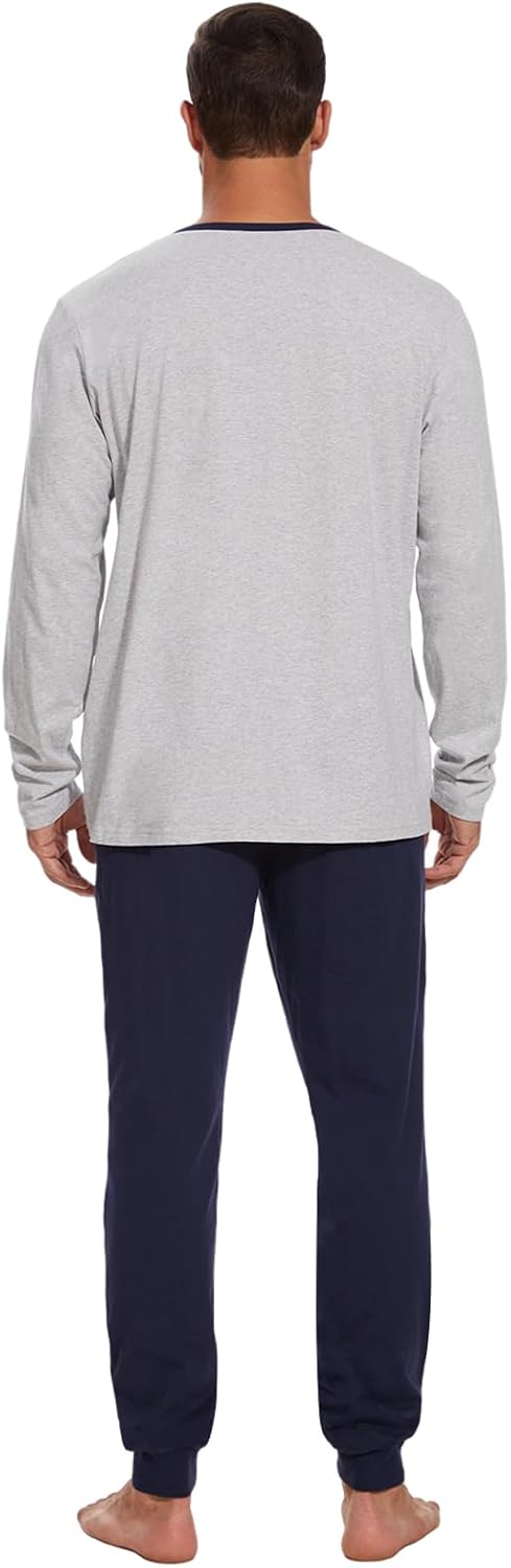 Men Pajama Set with Henley Neckline 100% Cotton Soft and Comfortable Nightwear 2-Piece Lounge Set