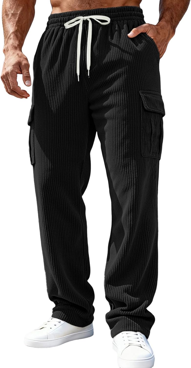 - 【DESIGN FEATURES】Outdoor corduroy pants have utility elastic waistband and freely adjustable drawstring closure, which can ensure the comfort of waist