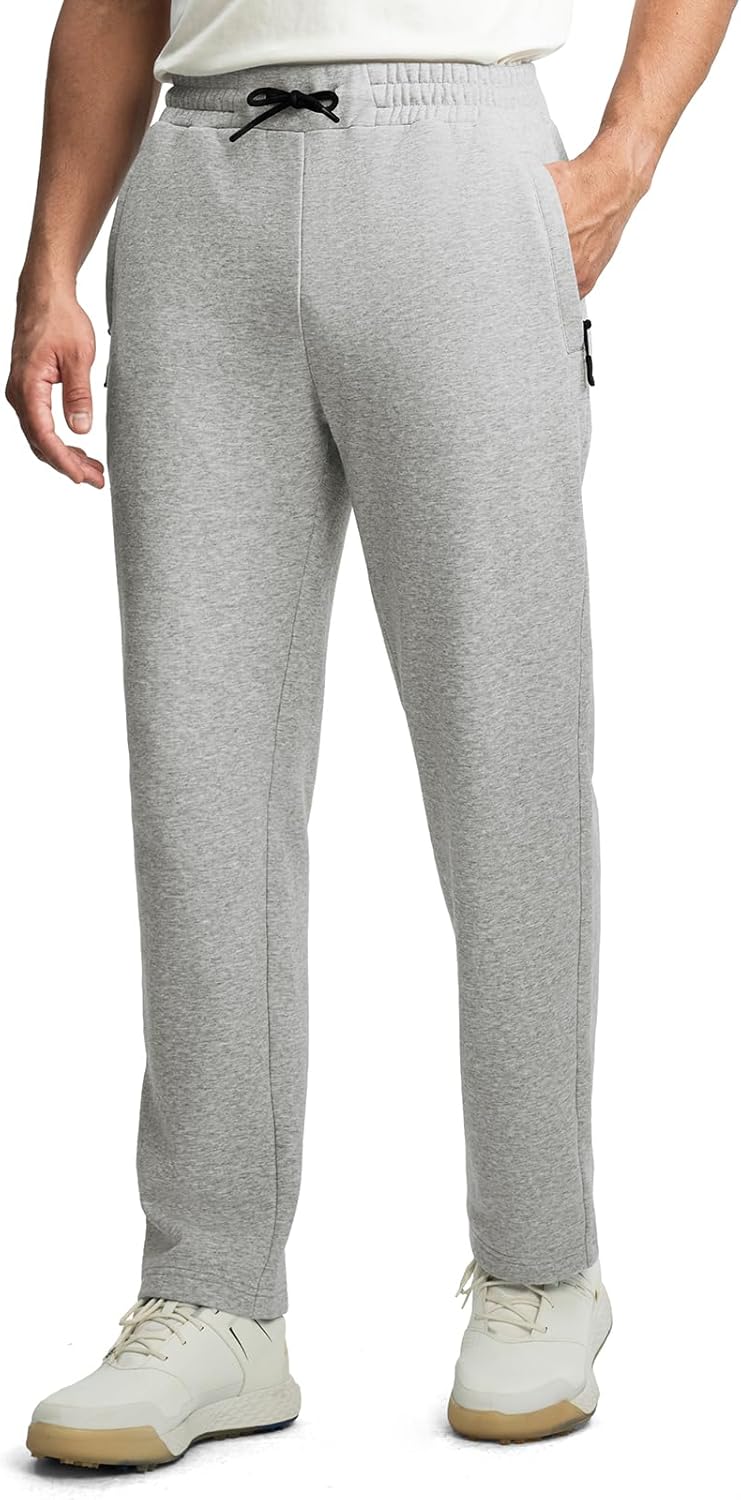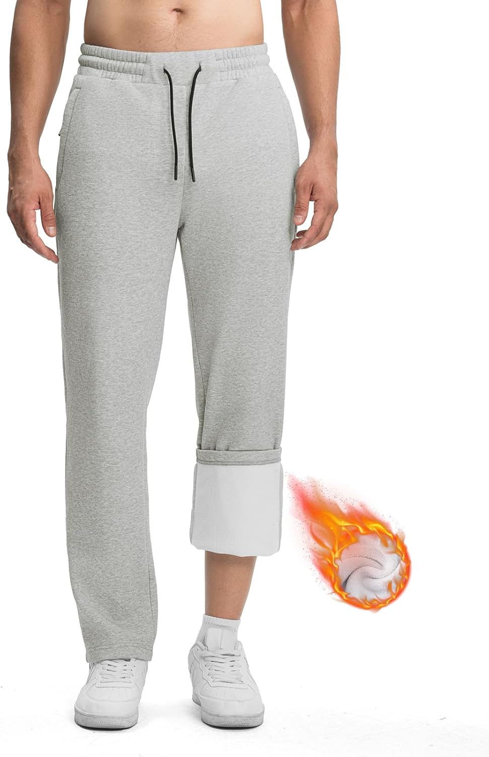 Men’s Fleece Sweatpants Straight Leg Athletic Yoga Lounge Pants Open Bottom Casual Jersey Pants with Zipper Pockets