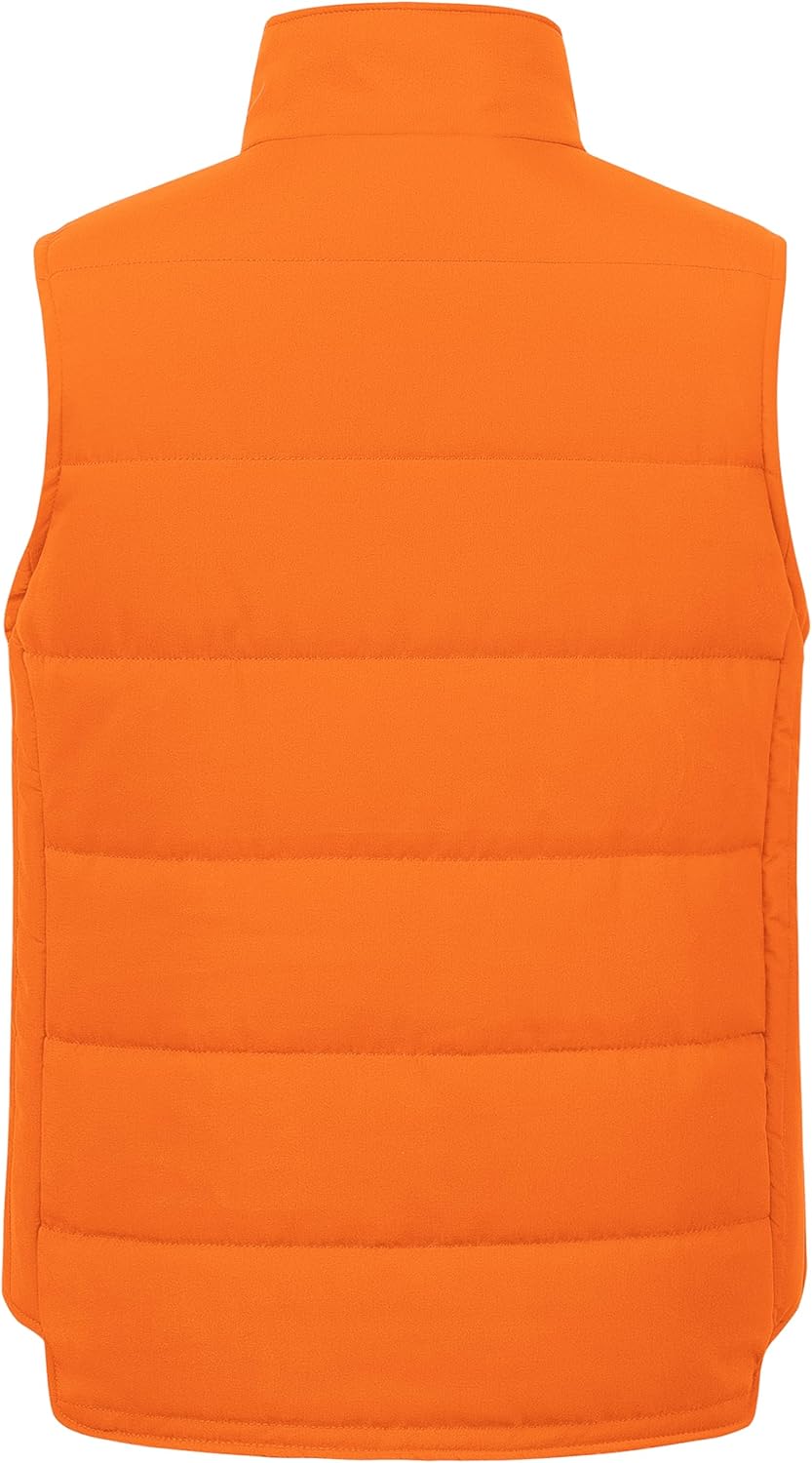 - 💕Keep Warm & Wet Protection: Water- and wind-resistant, lightweight shell fabric.Synthetic insulation provides reliable warmth in wet weather.This winter vest outerwear allows arms full motion while keeping you trunk warm.Its not bulky.Its full-length zipper goes all the way to the top,converting the vest into a neck-warmer