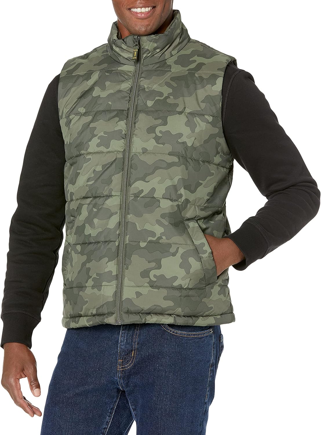 - COLD-WEATHER STYLING: Stay warm in this versatile puffer vest featuring a full-length center front zipper and fleece-lined collar.