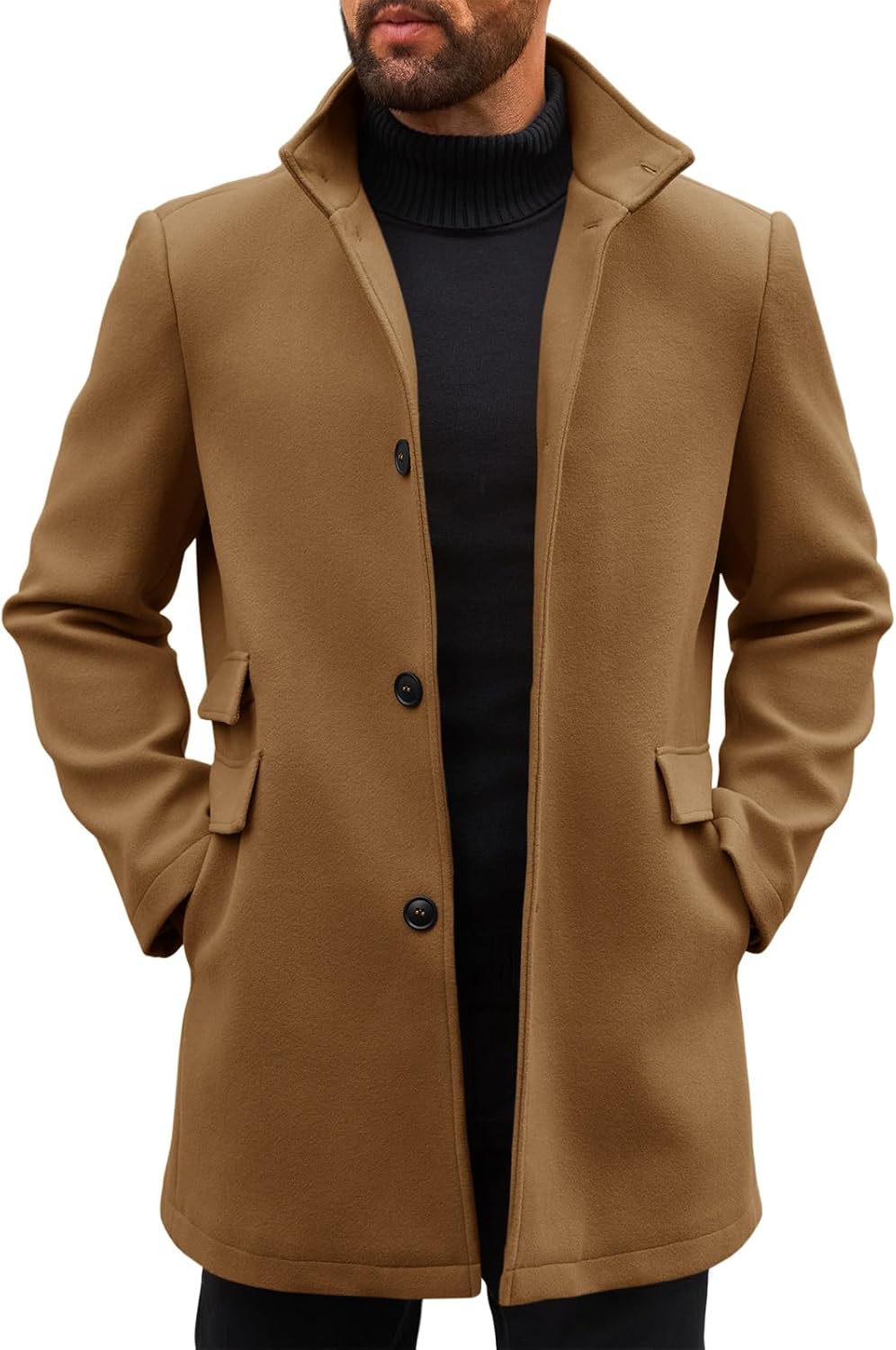 - 【Material】: The men’s casual slim fit trench coat is made of high quality polyester material. It feels like wool blend to the touch, soft, skin friendly, and durable. Good capability of wind resistance and warmth, so you can stay cozy and comfortable even in the coldest temperatures