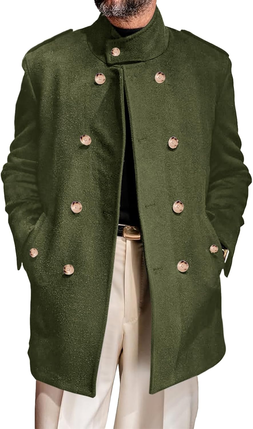 - Stylish Design: Featuring a timeless double-breasted front, a sleek stand collar, sturdy buttons, two side slant pockets and one inner pocket, this fashion pea coat exudes sophistication. The modern fit and mid-long length provide a polished silhouette, perfect for both casual and semi-formal occasions