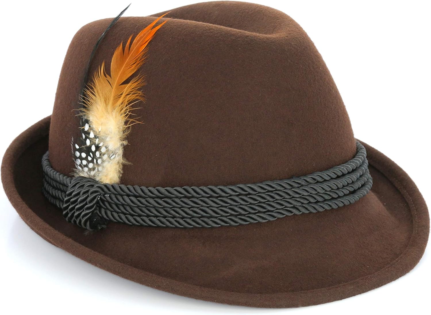 - Fashionable Bavarian / Alpine / Fedora style wool hat. Black Wool