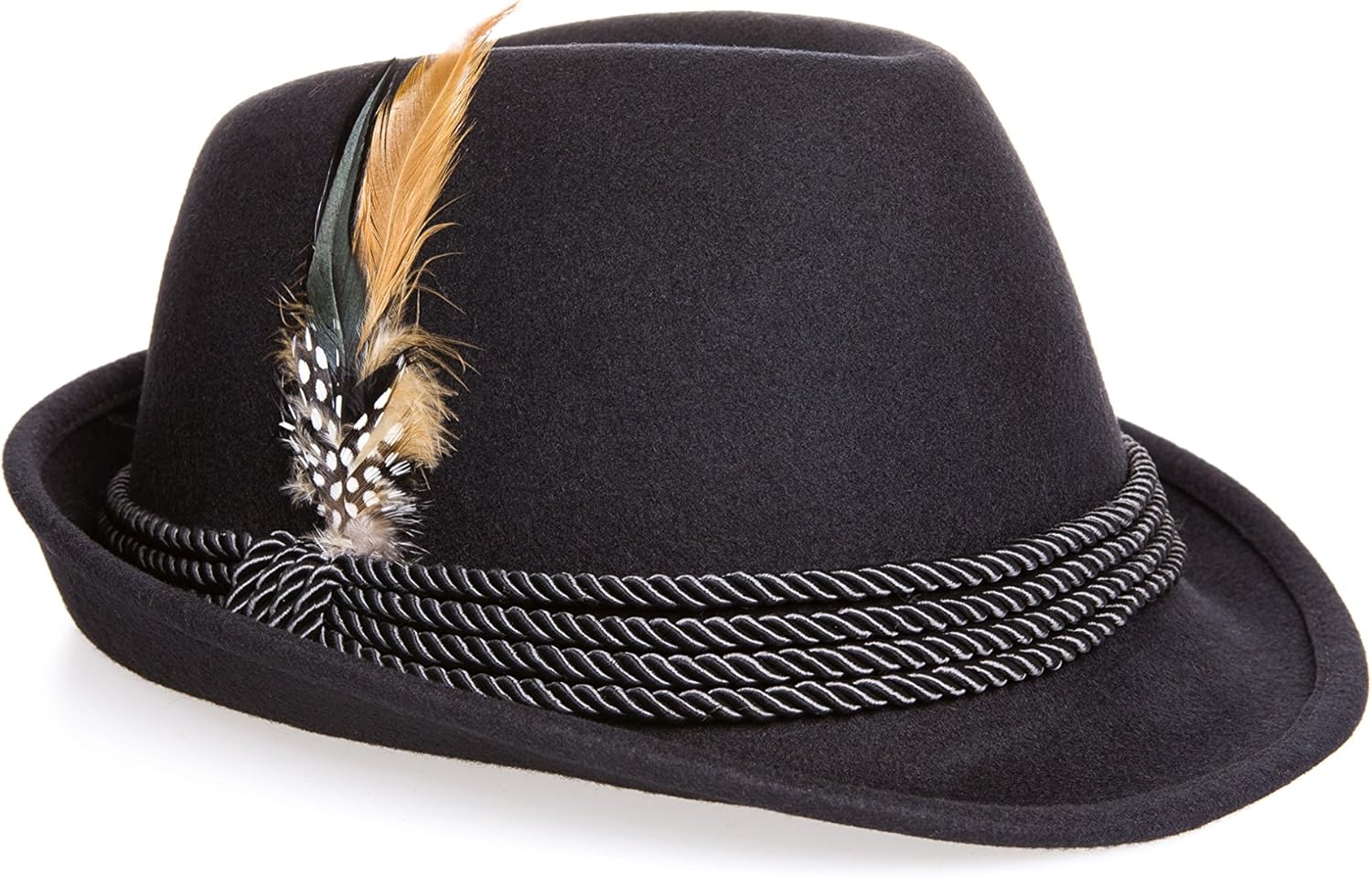 • Fashionable Bavarian / Alpine / Fedora style wool hat. Black Wool
