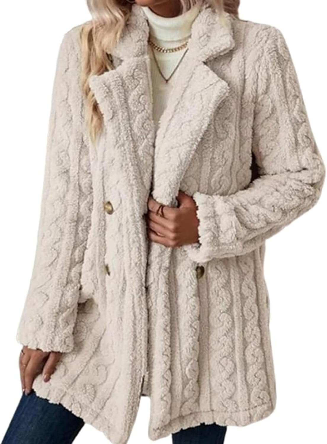 Winter Women’s 2025 Double Breasted Lapel Neck Flannelette Coat, Long Cardigan Faux Fur Warm Outwear Jackets