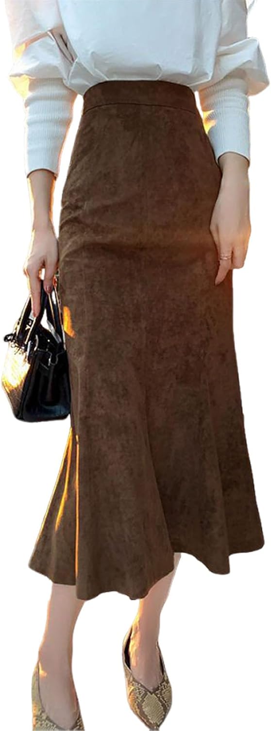 • 【STYLISH DESIGN】The 2025 novelty fashion mermaid suede midi skirt features high waisted, zipper closure, slimming-fit, below knee length, ruffle details make this suede skirt chic and flattering. This elegant faux suede fishtail pencil skirt is perfect for the woman who wants to keep charming and comfortable all the time.