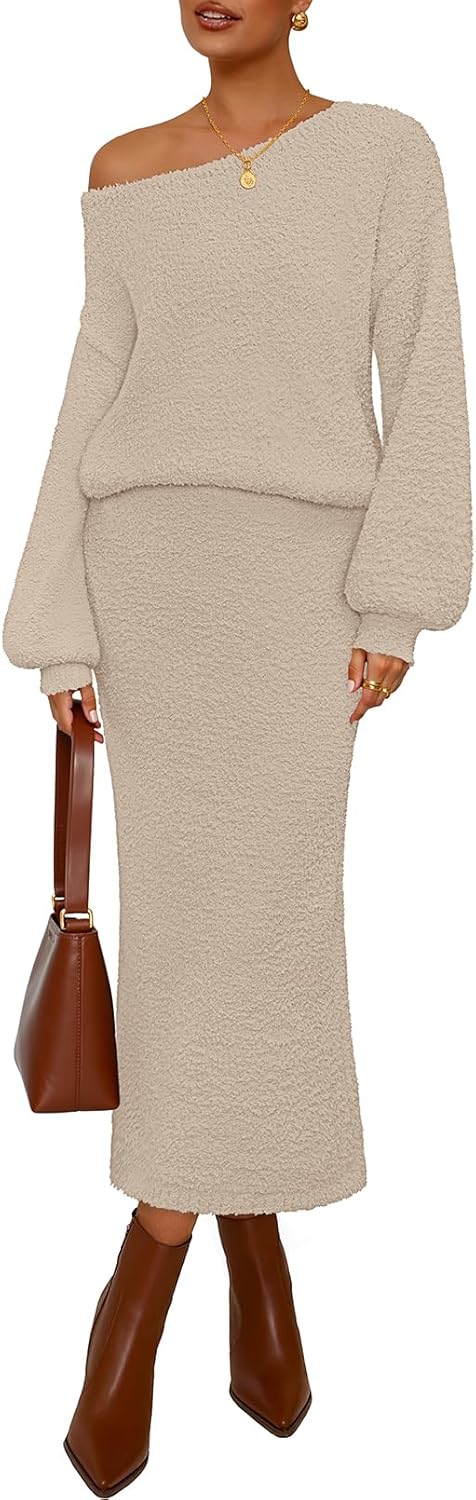 - Features: Solid skirt set women 2 piece outfit, including a sweater like pullover top with long lantern sleeves, drop shoulders, a boat neck, and a flattering casual fit, and an elastic waist maxi skirt; loungewear set; pajama set; fall winter travel clothing 2025