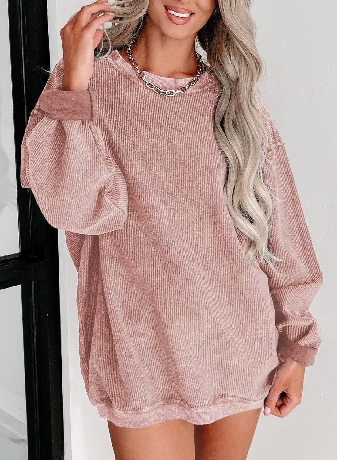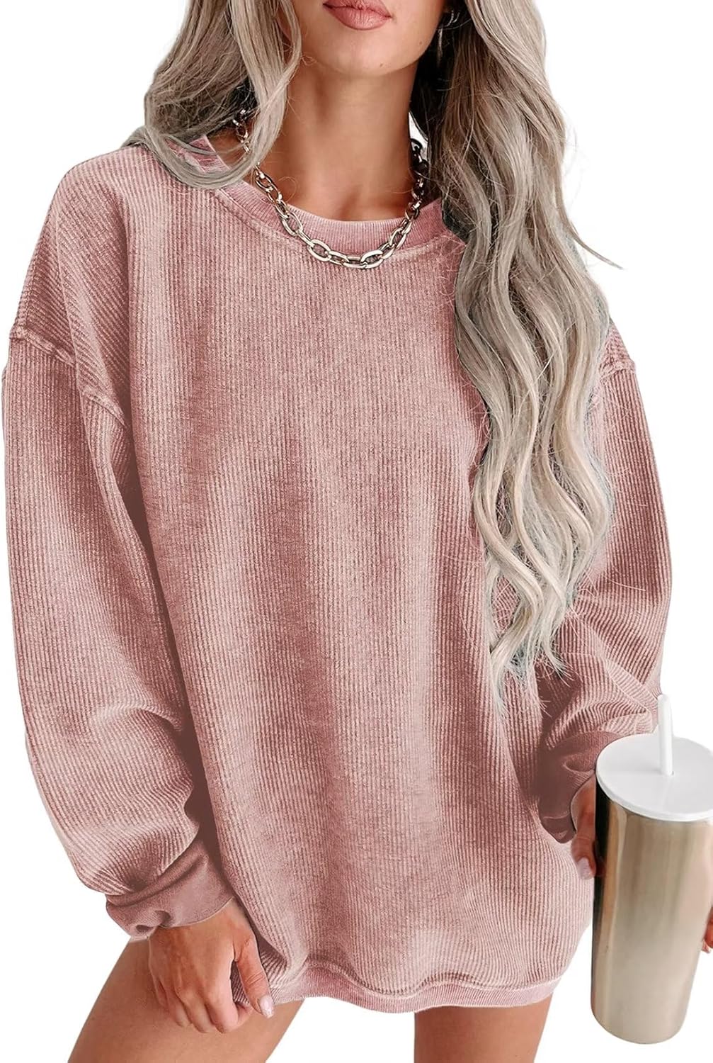 • Warm and chic: Embrace the winter chill with this laid-back sweatshirt that boasts an ultra-relaxed oversized style combined with an eye-catching corded pattern, setting you up for a fashion-forward cold season.