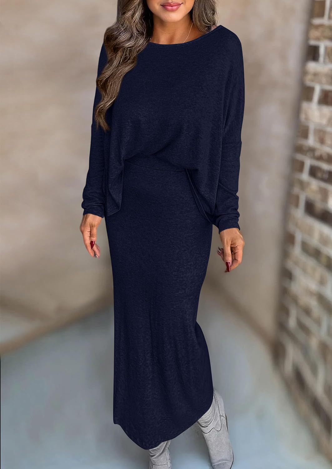 • FEATURES: Matching Sets Women Clothing; Two Piece Skirt Set for Women; Long Sleeve Shirts for Women; Maxi Skirt with Slit; Loose Fitting Dolman Sleeve Tops for Women; Bodycon Long Skirt; Elastic High Waisted Skirts for Women; Womens Sets 2 Piece Outfits