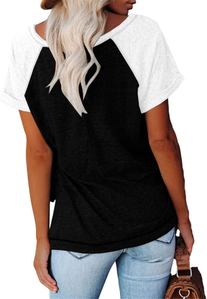 - Colorblock raglan short sleeve t shirts feature in casual short sleeve, sexy and slimming henley neck, loose fit style, cotton summer basic tees, tunic tops to pair with leggings, button up v neck.
