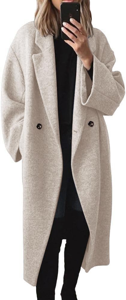 - Features: This oversized pea coat for women features long sleeves with drop shoulders, a notch lapel, a double-breasted style, a solid color, and two side pockets. It has a very basic and simple design and is available in multiple colors.